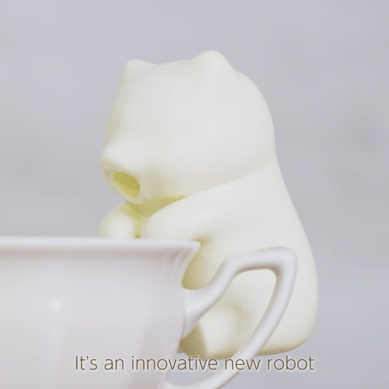 Cute cat robot that blows air, so you don’t have to. Attaches to a cup/bowl or sits by a plate. Multiple blowing patterns.